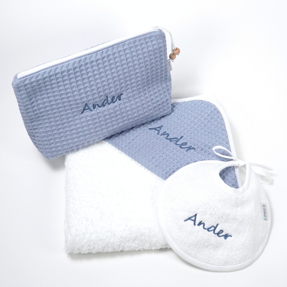 - Precioso neceser bebé personalizado con el nombre del bebé donde podrás poner las cositas necesarias para su aseo, tanto si vas de paseo como de viaje.