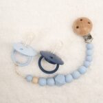 - Sujetachupete HI BABY modelo MOMMA de silicona de grado alimentario libre de BPA, PVC, Ftalatos, cadmio y plomo. Pinza de madera y cordón de nylon de alta resistencia, bajo normativa europea EN12586:2007 (A1:2011)