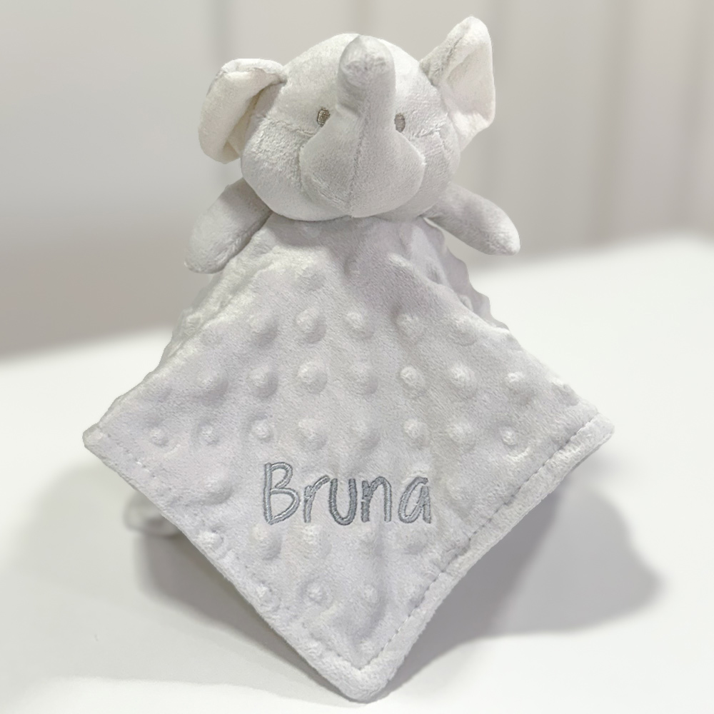 Precioso y suave DouDou personalizado elefante, perfecto para un regalo a un Recién Nacido, el cual se convertirá en su inseparable amigo.