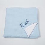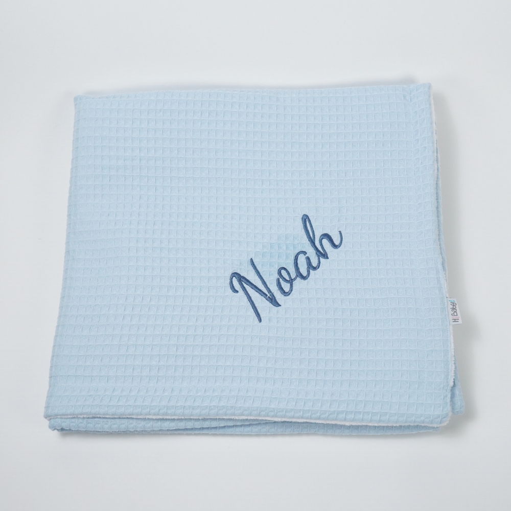 La manta bebé waffle coralina está compuesta por 100% algodón y coralina 100% Polyester, elaborada por Hi Baby!