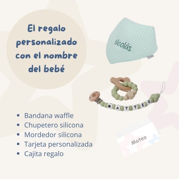 - Chupetero de silicona personalizado con el nombre del bebé, elaborado por Hi Baby, sujetachupete de silicona de grado alimentario libre de BPA, PVC, Ftalatos, cadmio y plomo. Pinza de madera y cordón de nylon de alta resistencia,bajo normativa europea EN12586:2007 (A1:2011).