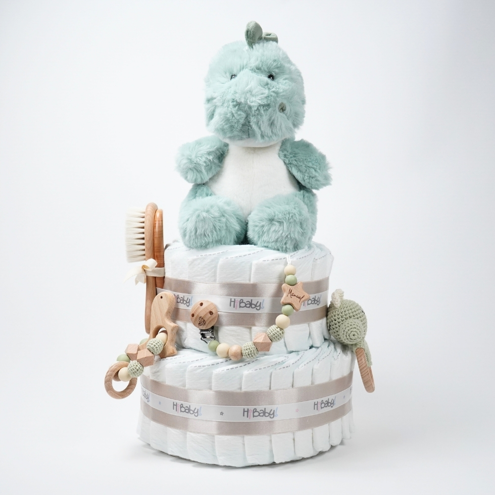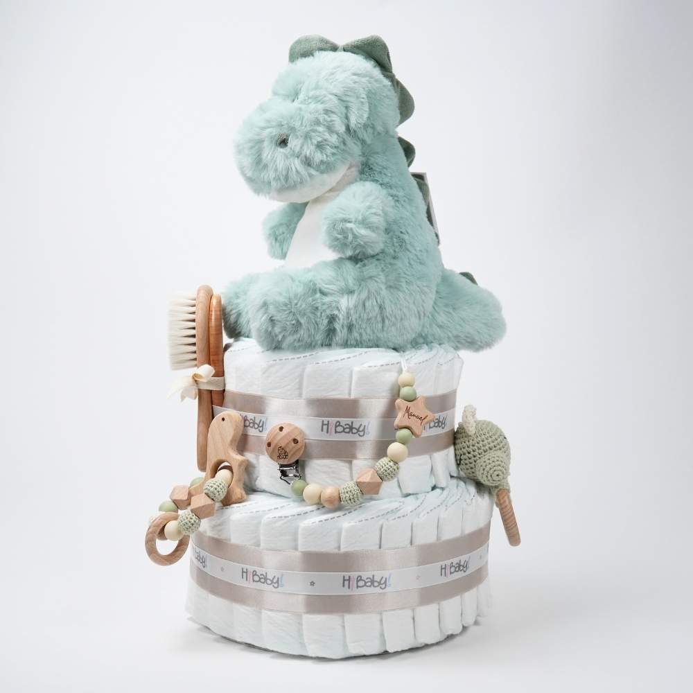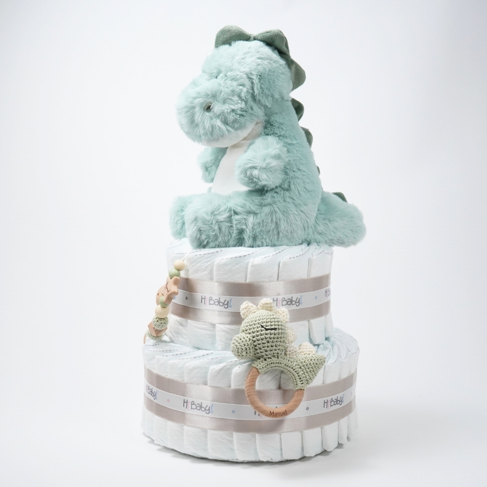 La Tarta de Pañales Baby DINO es un gran detalle para unos padres con un bebé recién nacido.