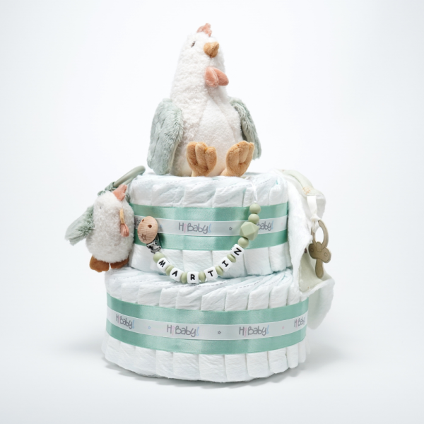 Contenido de la tarta de pañales 2 pisos Baby DINO regalo para recién nacido: