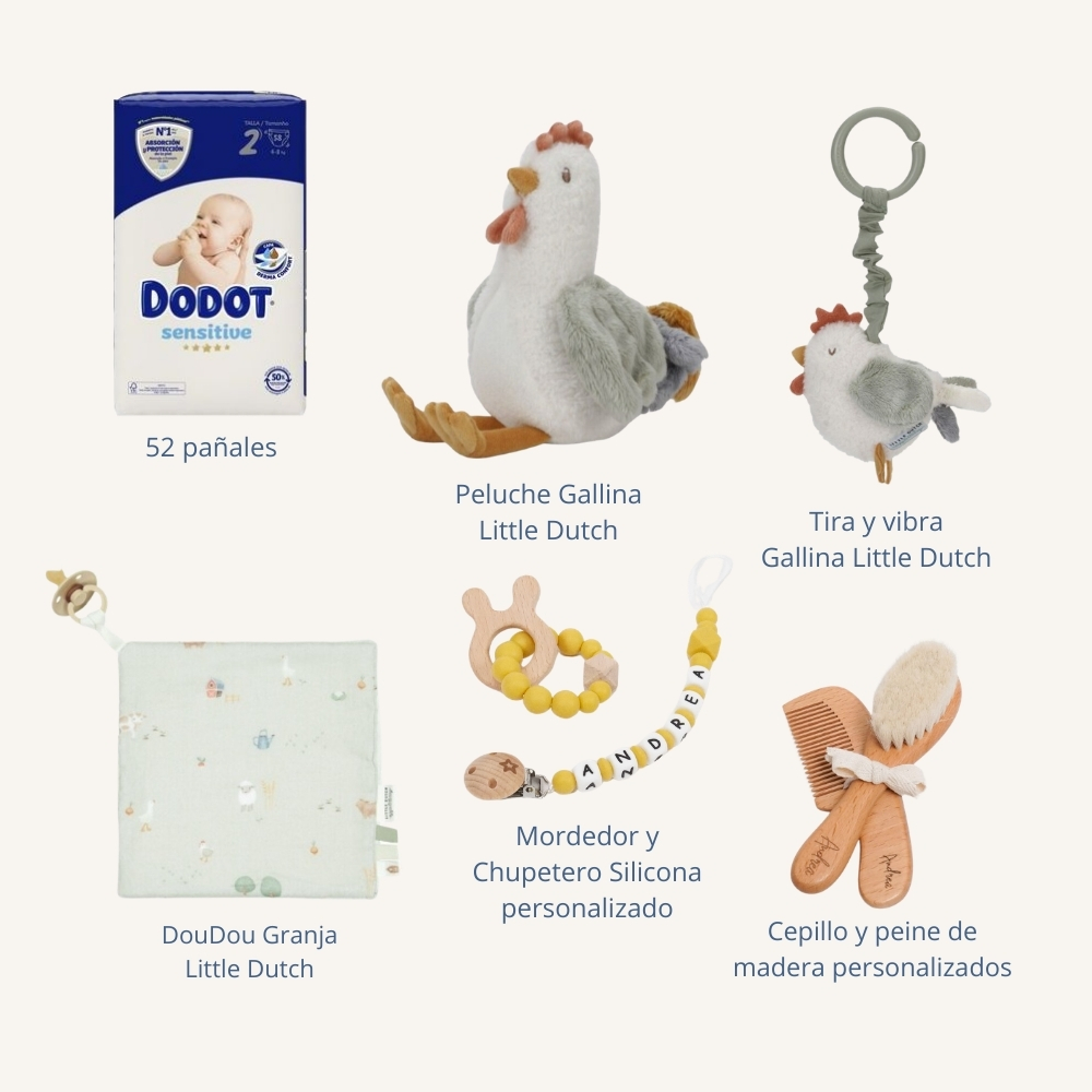 - Doudou granja Cocó de Little Dutch..¡Acurrúcate para sentirte cómodo! Mantén este suave paño de abrazos a tu alcance para recibir abrazos reconfortantes en cualquier momento y en cualquier lugar. Varias etiquetas que estimulan los sentidos y un lazo para colocar un chupete o un mordedor.