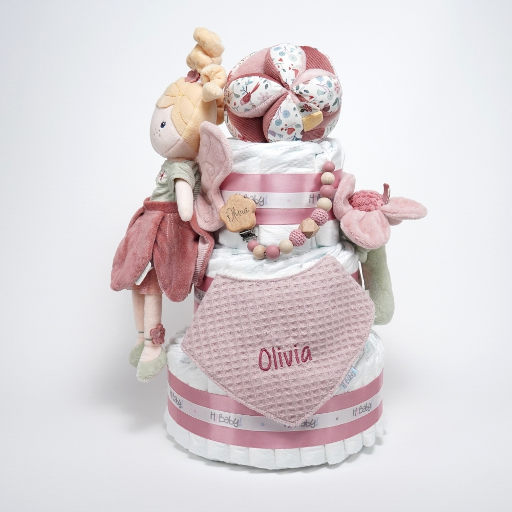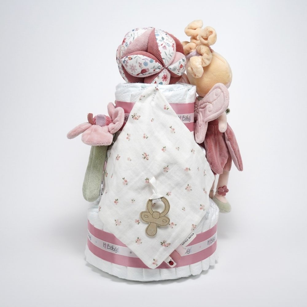 La Tarta de Pañales Hada Luna es un regalo único y lleno de magia para dar la bienvenida a un recién nacido. Coronada por la dulce Hada Luna, esta tarta no solo es práctica, sino también especial: una combinación perfecta entre utilidad y emoción. Luna, la guardiana de los sueños, acompañará al bebé en sus primeras noches, aportando calma, ternura y seguridad.