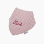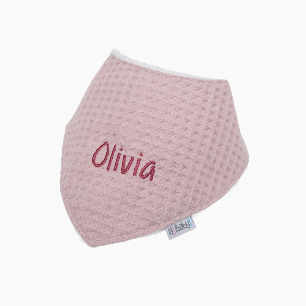 Medidas 12 x 12 x 12cm - Bandana secababitas personalizada, de waffle y rizo de algodón 100%. Realizado a mano en Hi Baby! con cierre de velcro muy cómodo para su ajuste y seguro a la vez.