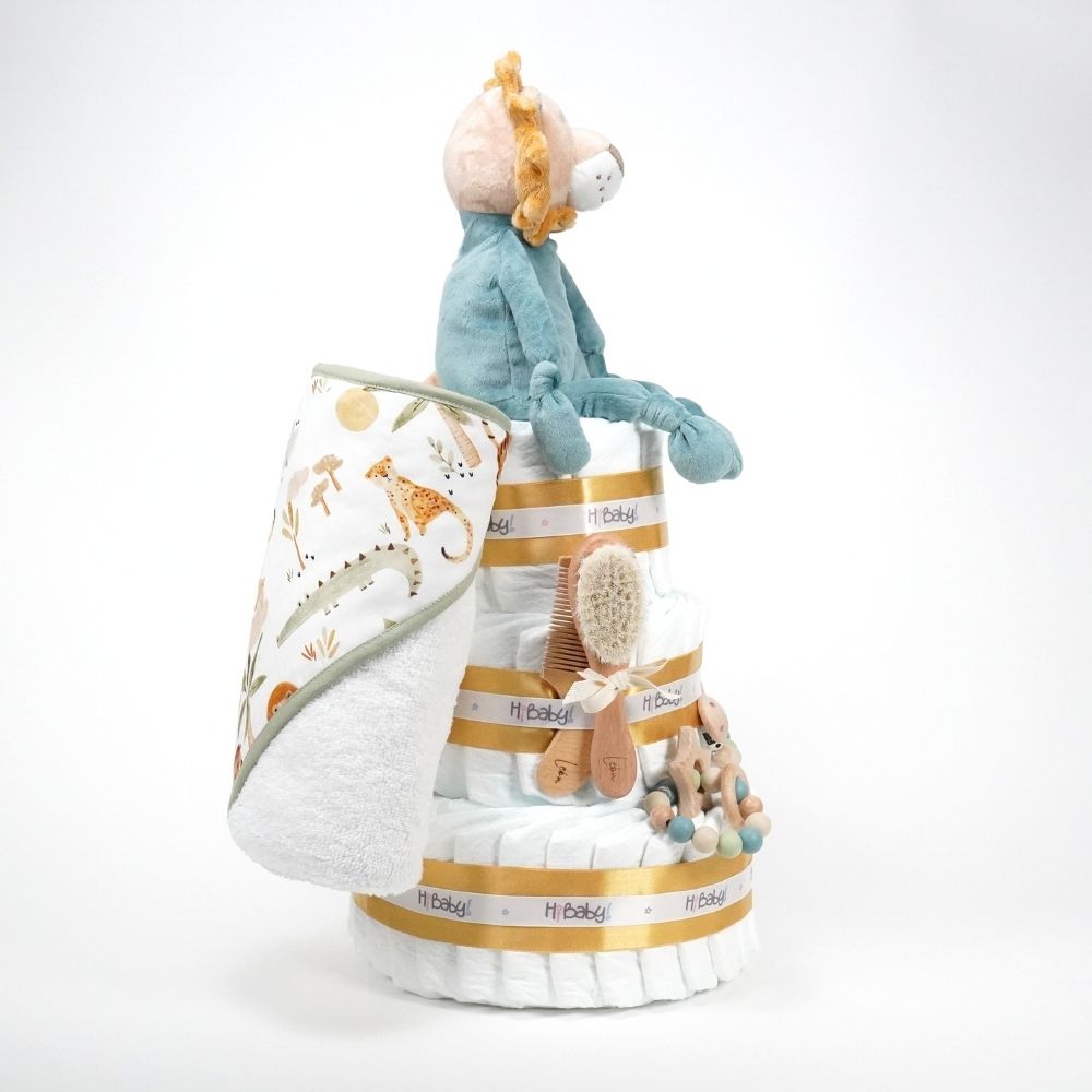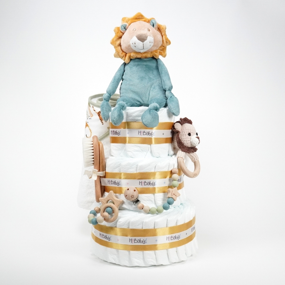 La Tarta de pañales Baby Lion 3 pisos, es una de las nuevas incorporaciónes a la familia Hi Baby!, el regalo más exclusivo para un bebé recién nacido.