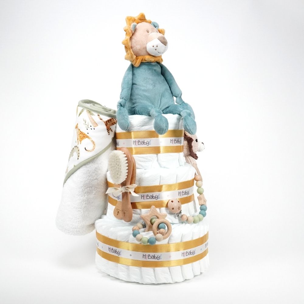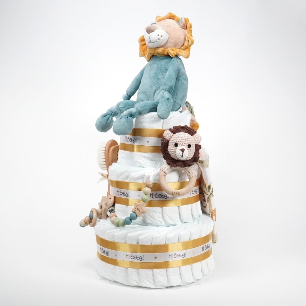 Tarta de pañales 3 pisos Baby Lion, un regalo original para dar la bienvenida a un recién nacido