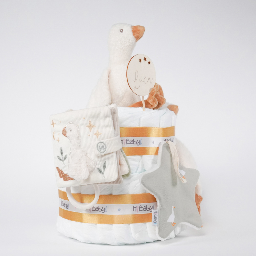 La Tarta pañales 2 pisos Little goose, es el regalo ideal para un bebé recién nacido.