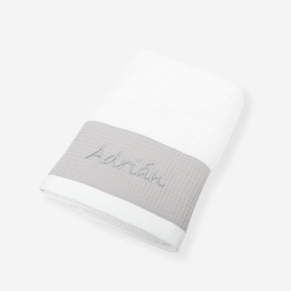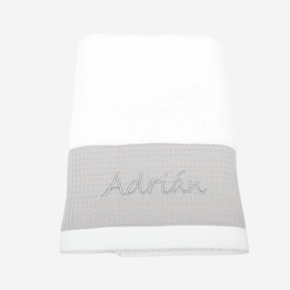 Nuestra toalla personalizada con bordado, es el regalo perfecto para mimar a tu pequeño. Fabricada con una suavidad excepcional y un grosor de lujo, esta toalla ofrece una experiencia de secado reconfortante para la delicada piel de tu bebé.